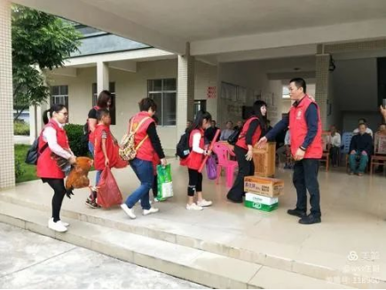 來到敬老院門口讓我發現從事志願者工作的并不隻有我們這支隊伍,還有許多來自其他區縣的志願者隊伍在敬老院門口拍照,這說明他們已經結束了志願者活動并準備返回了,這不由得讓我想要趕緊走進敬老院并正式開始志願者活動,隊長則和敬老院負責人在一旁交流志願者活動的事情。